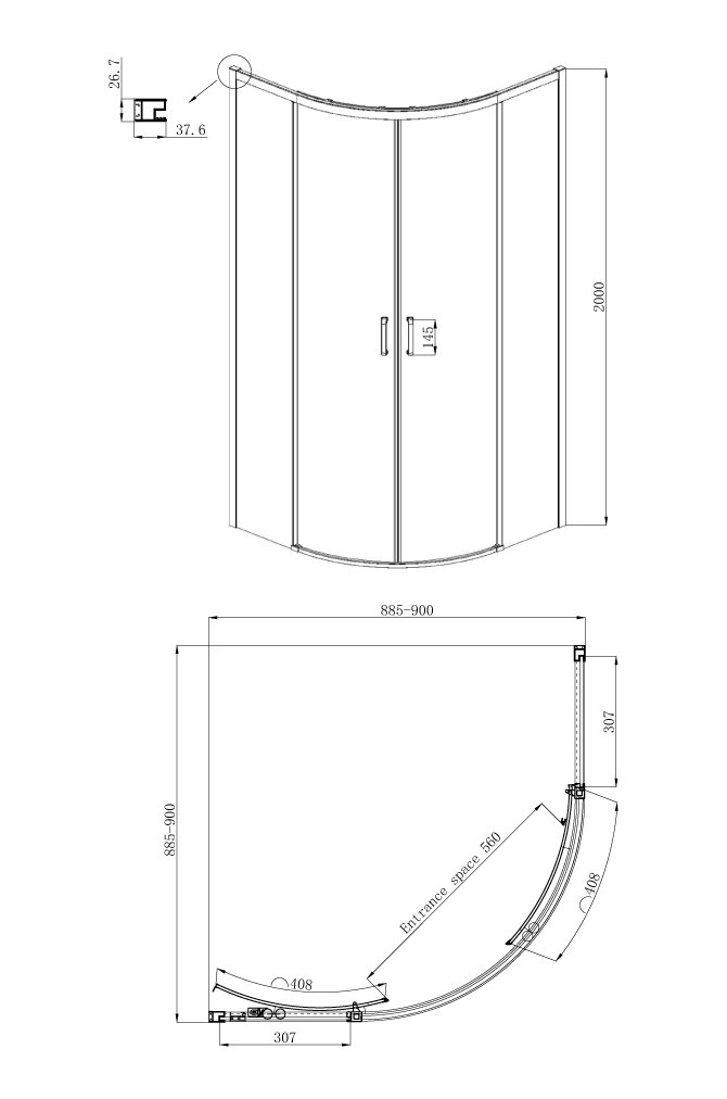 У модели раздвижные двери с надежной системой открывания/закрывания. Профиль из алюминия подчеркнет элегантность линий. При определении места в ванной комнате следует учесть, что установка этого душевого уголка без поддона возможна. Кстати, поддон приобретается отдельно. Произведен уголок в Германии.