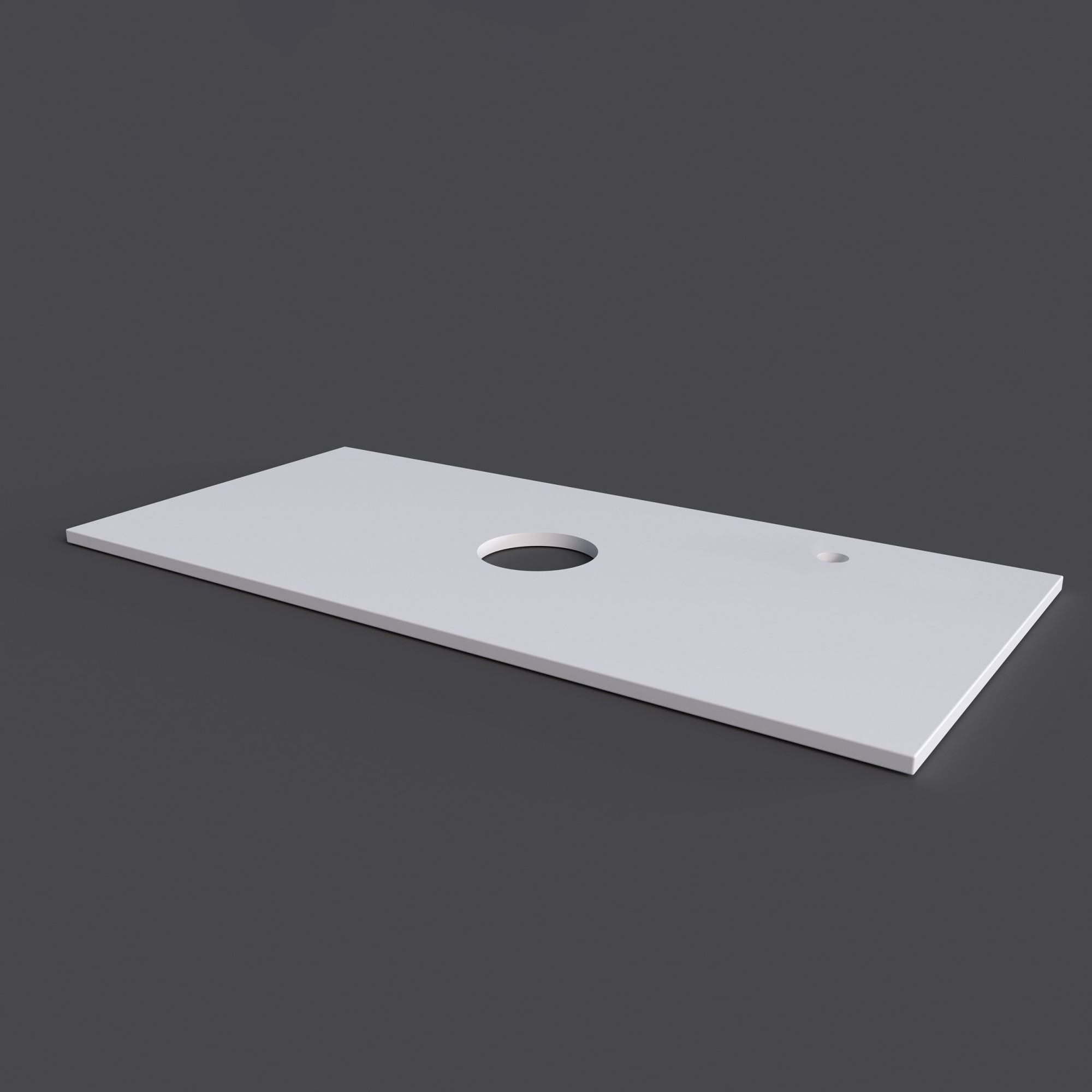 Столешница Флай 100 cм выполнена из МДФ: белая матовая пленка с покрытием SoftTouch придаст современный вид и позволит установить накладную раковину. Отверстие под смеситель в левом углу