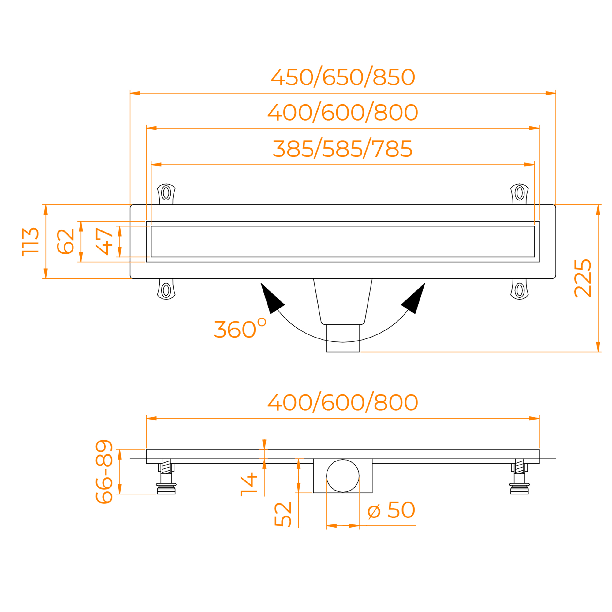 Небольшая монтажная высота и регулируемые ножки позволяют легко устанавливать трап даже в ограниченных пространствах.